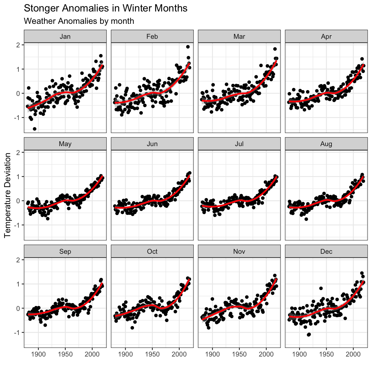 - We can see that the weather anomalies are more pronounced in the winter months!