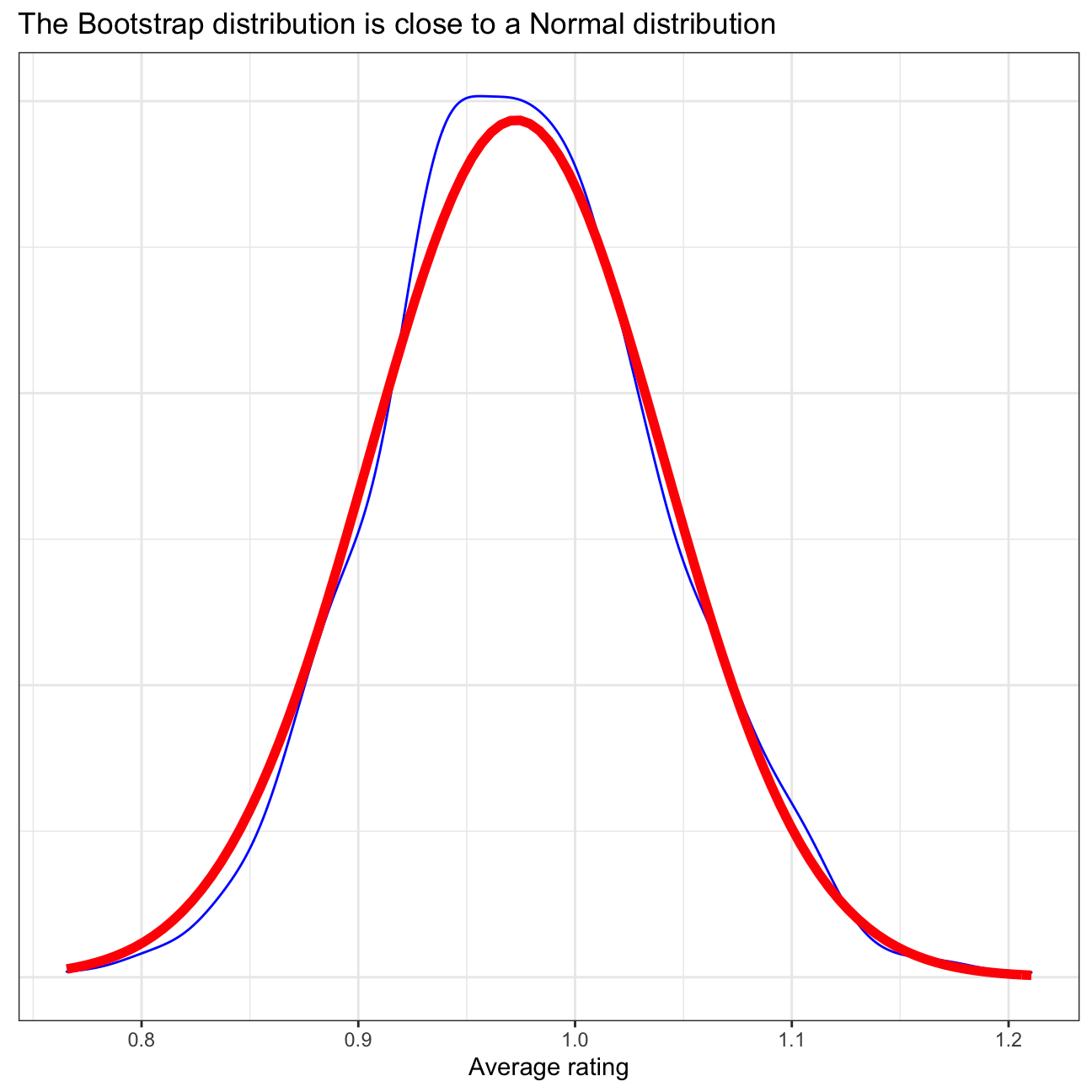 labs(title = "The Bootstrap distribution is close to a Normal distribution",